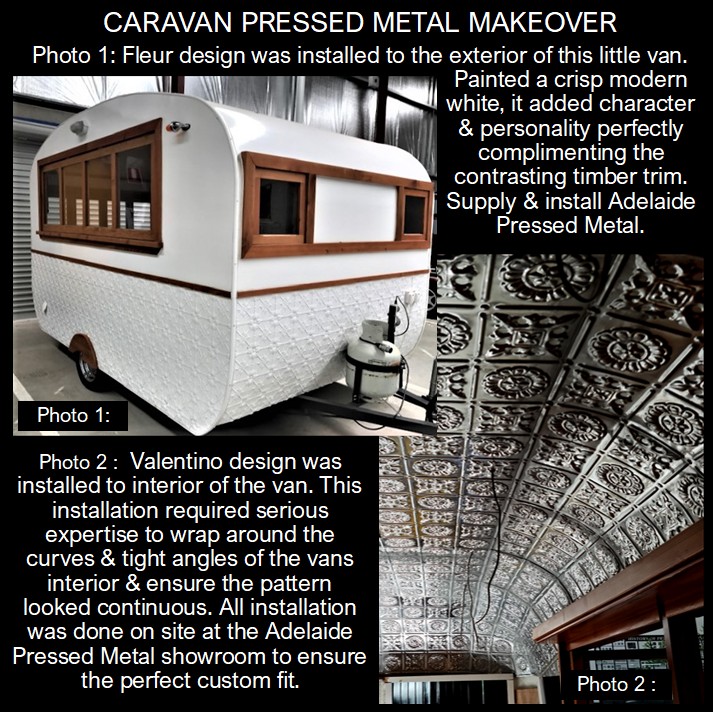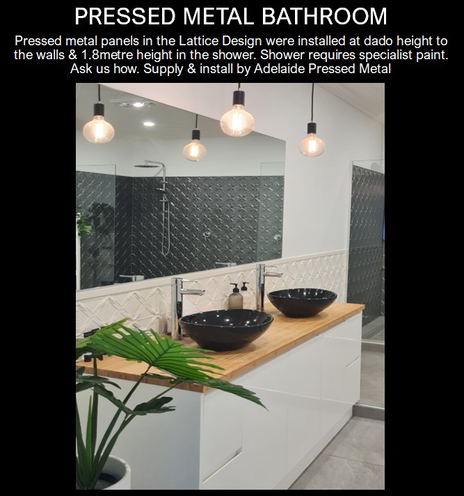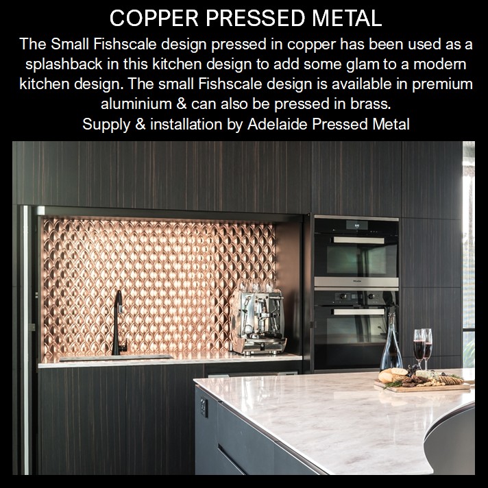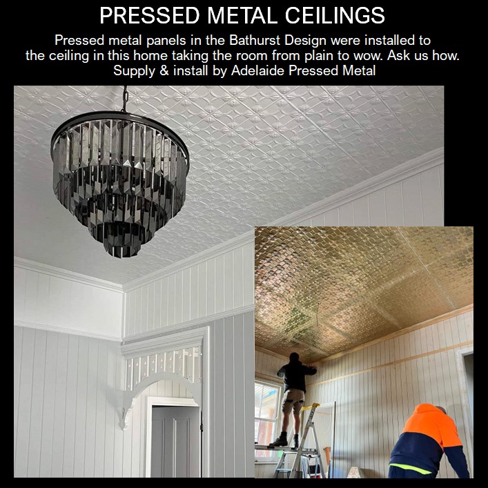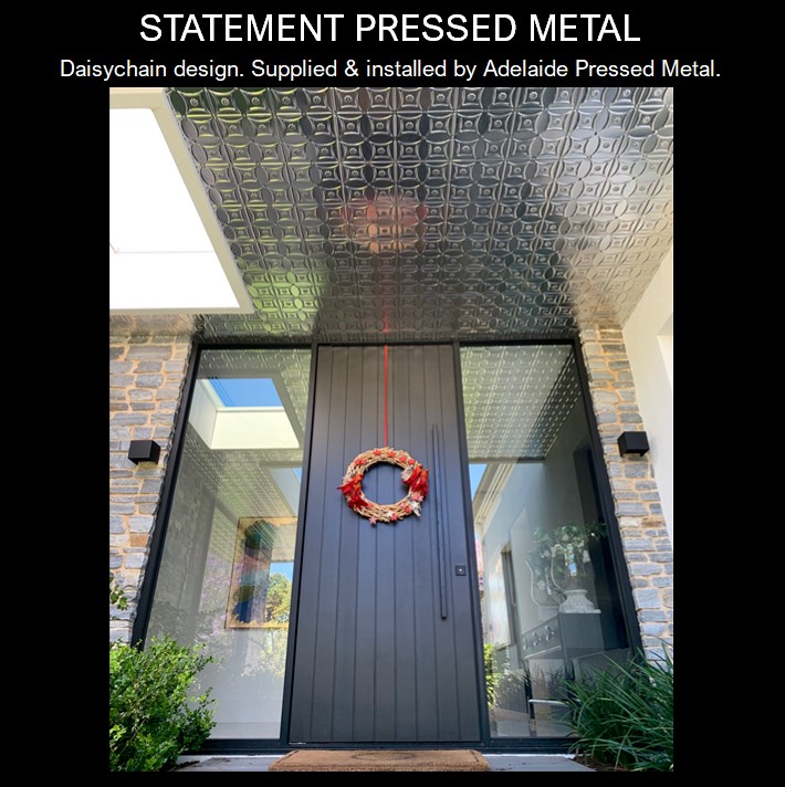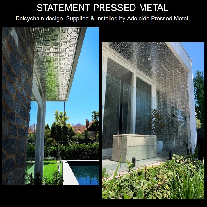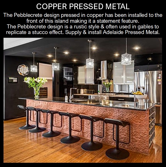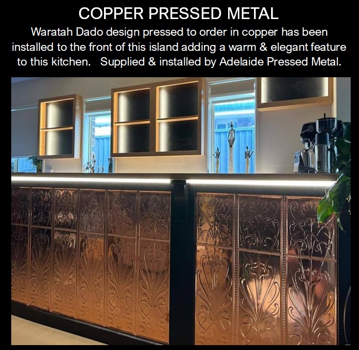 Project DescriptionPressed metal can be used in endless applications. Adelaide Pressed Metal are licensed contractors & can install your pressed metal to make your project easy & hassle free. Many designs can be pressed in copper or brass & we also offer a painting service for a professional finish.