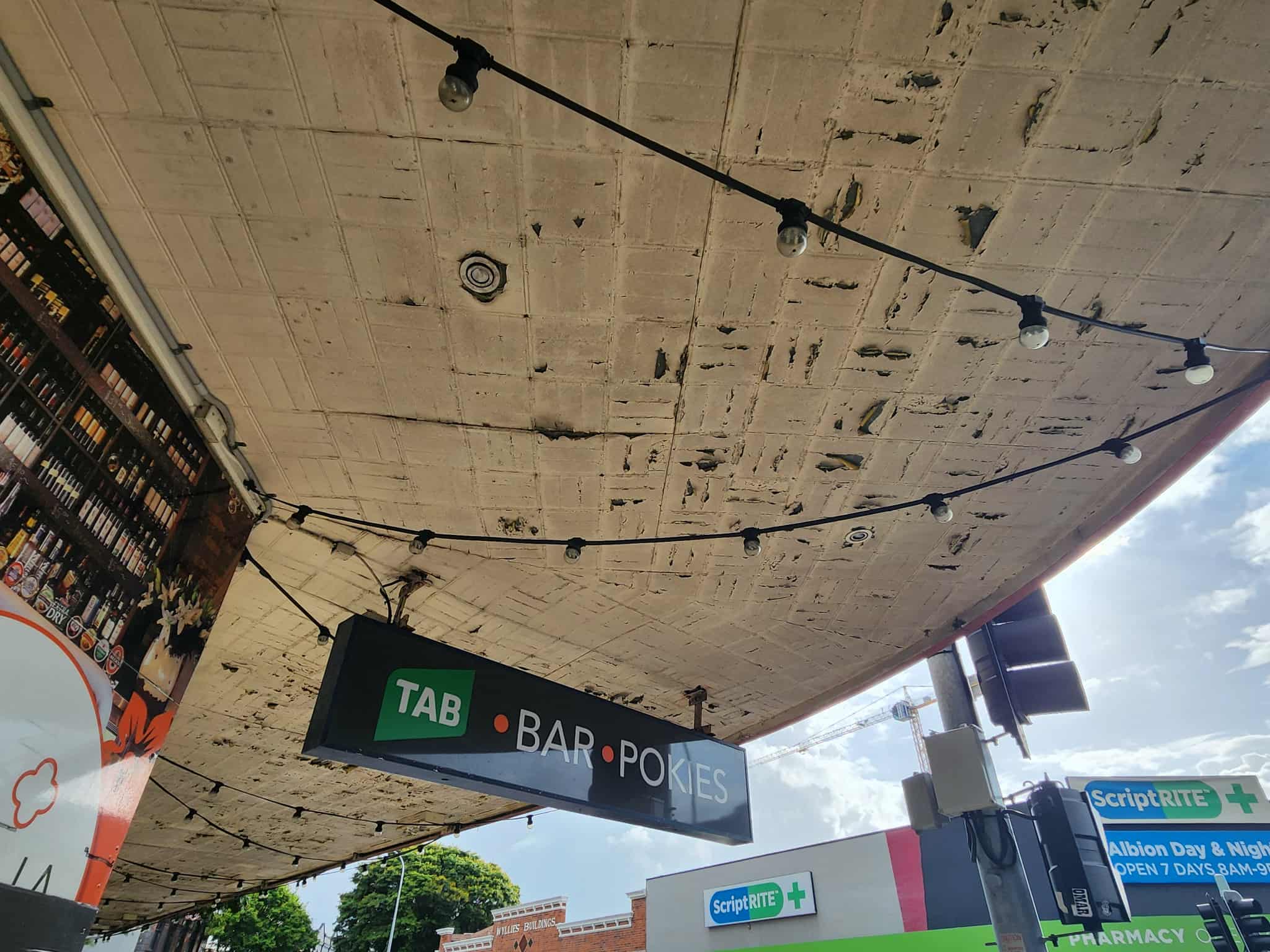 Project DescriptionThe team at Brisbane Pressed Metal replaced damaged battens, beams & pressed metal panels to the 150 year old Albion Hotel verandah that was in a derelict condition. Some of the original metal panels lining the verandah ceiling were rusted through in places & Brisbane Pressed Metal replaced the damaged panels using an exact reproduction of the original panel design Parquetry#3. The new panels pressed in premium aluminium matched seamlessly with the orignial panels & will ensure that the original character of the building will remain intact for the next 150 years.