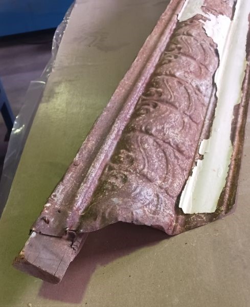 Scope of Contracting WorksReplace & install original rusted pressed metal panels like for like. Create new cornice die like for like to replace original cornice. Create bespoke replica ceiling rose vents to replace original rusted ceiling rose vents.
