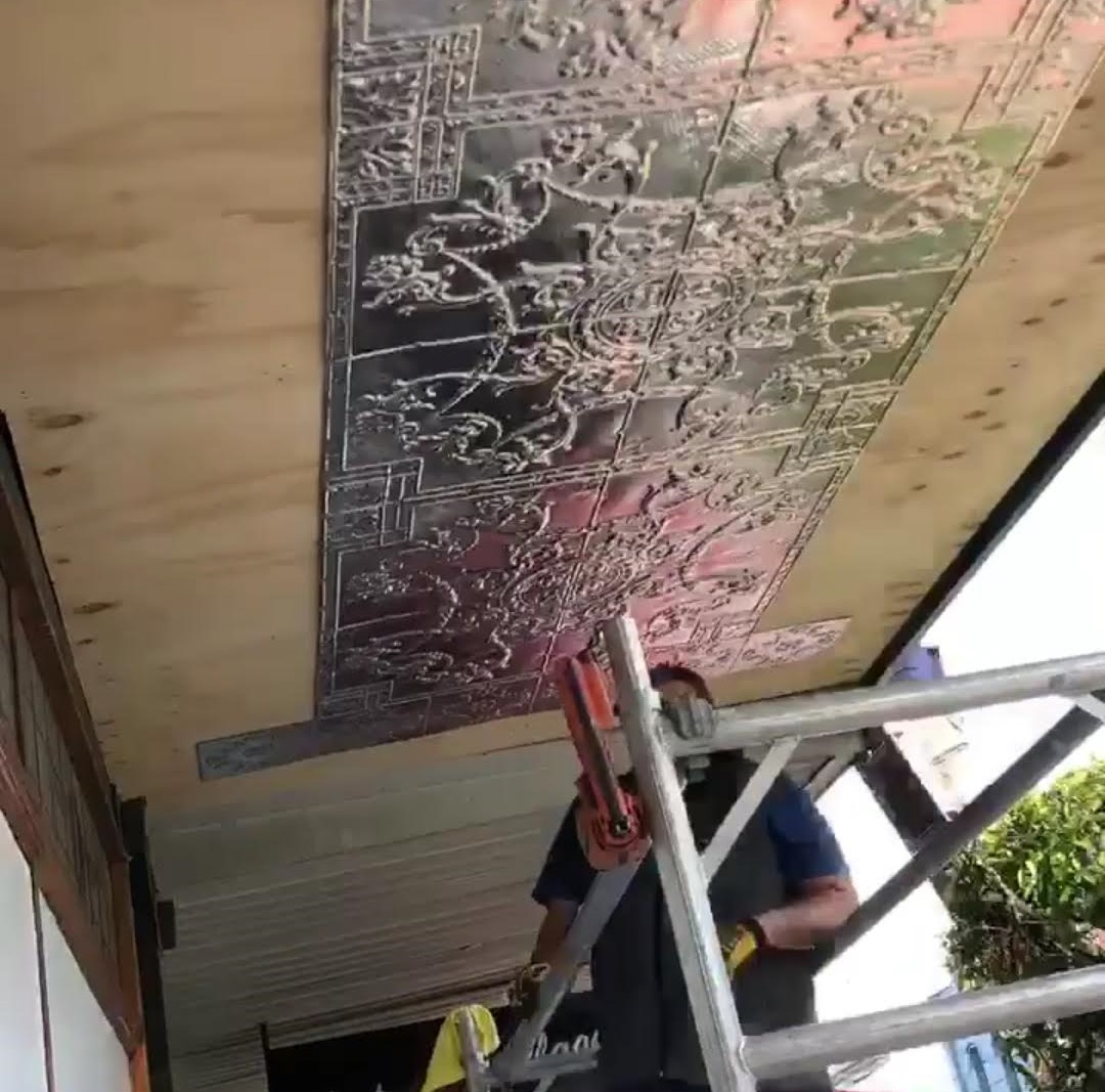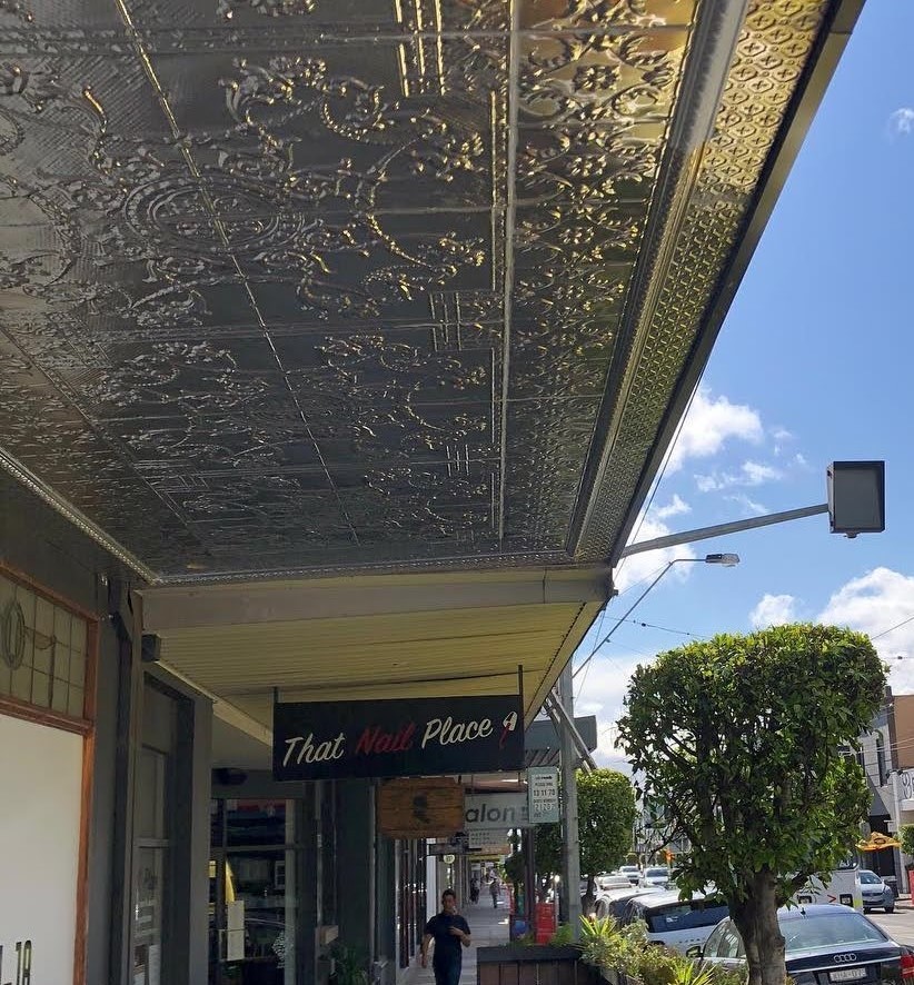 Project DescriptionThe team at Melbourne Pressed Metal supplied and installed the pressed metal panel design, Osmond, with a Stockholm design border to the verandah of this Edwardian building in High Street, Armidale Victoria. The designs matched perfectly with the original designs on the existing soffit of this two storey Edwardian shop, completing the authentic restoration of heritage character.