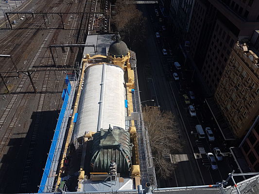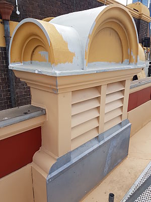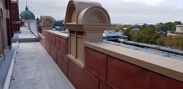 Project DescriptionExtensive repair and restoration works were carried out on the platform side of Flinders Street Train Station by National Pressed Metal, contracting arm of the Australian Pressed Metal Group. Teams from Melbourne Pressed Metal and Adelaide Pressed Metal worked closely with builder BUILT to restore the platform fascade to its original impressive condition. The majority of the overall restoration works of Flinders Street Train Station was completed on the platform side of the building. Original metal shingles on the fascade were repaired and restored as well as original metal arches, capitals and sills. 14 original metal vent stacks were also repaired and restored using soft zinc to keep the authentic heritage fabric of the building. Continuation of the replacement of 350 metres of lead flashing was also installed along the the platform fascade. Penetrations under the platform verandahs were also cut to allow for rain heads installation.