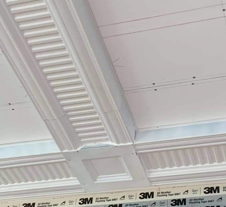 Restoration and replacement of pressed metal verandah ceiling. Builder - LT McGuinness Wellington New Zealand