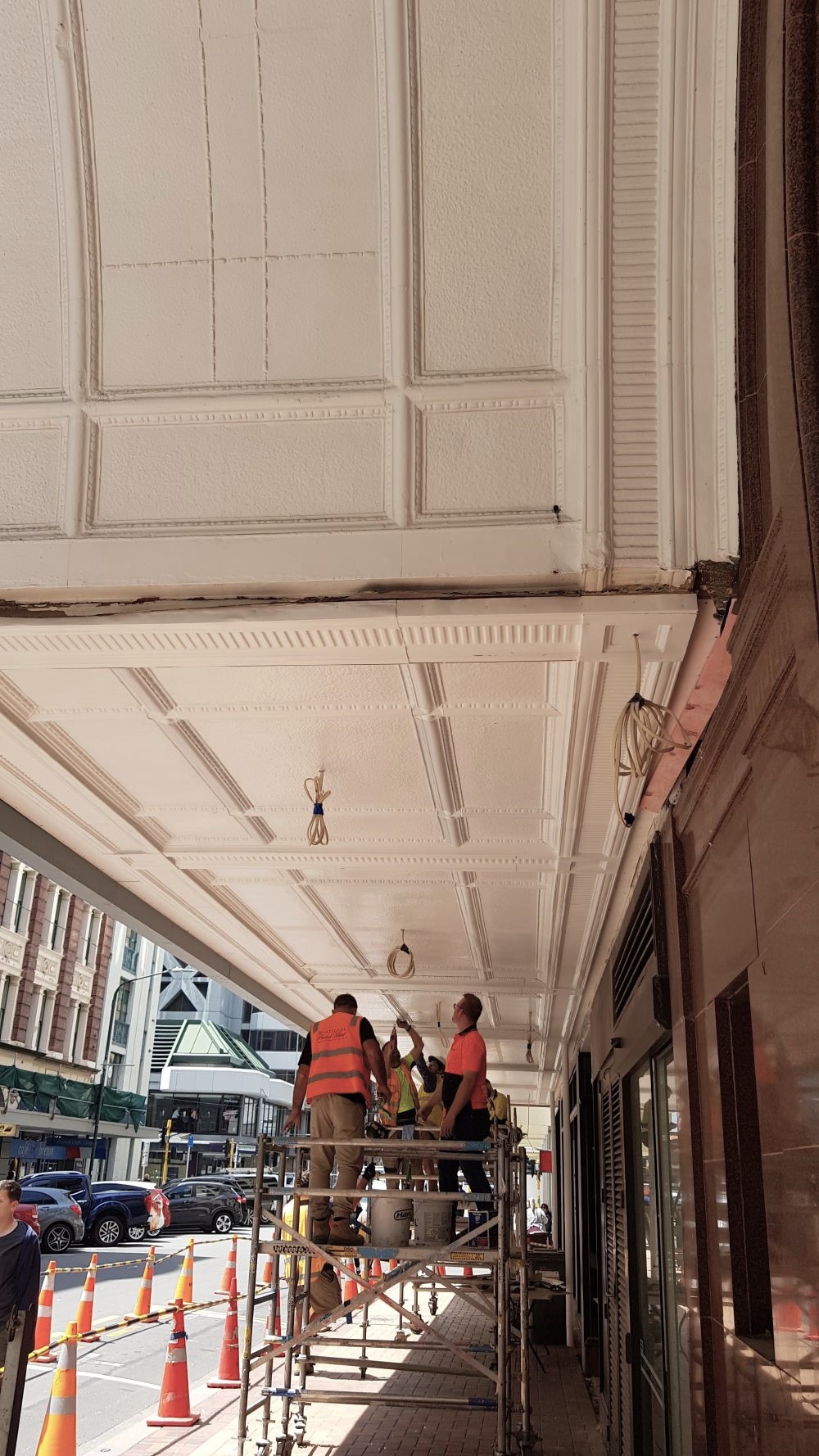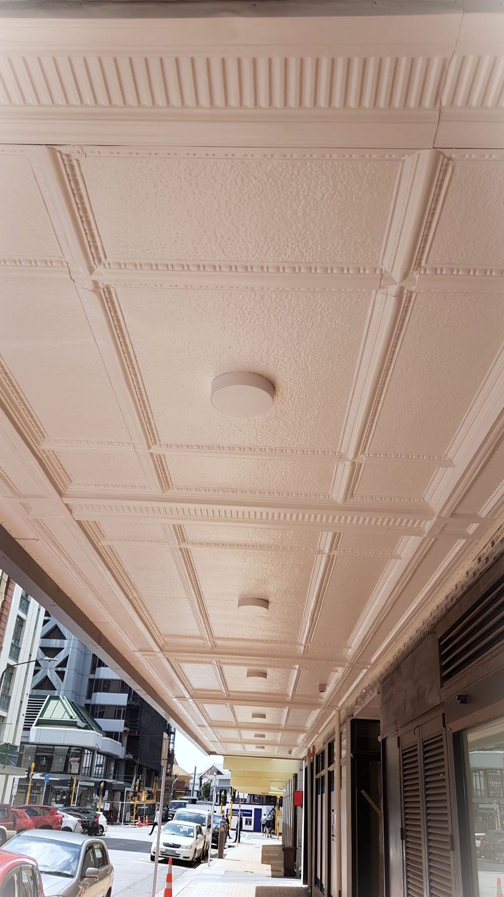 National Pressed Metal, contracting arm of the Australian Pressed Metal Group worked closely with builder LT McGuinness & Stamp Pressed Metal on the restoration of the verandah awning at the Lambton Quay shopping precinct. Teams from Melbourne Pressed Metal and Adelaide Pressed Metal worked to replace like for like the pressed metal verandah ceiling. New dies were produced for the original cornice, batten, beam cladding and mitres to replace and restore to original condition. The beam cladding when pressed was hand folded to match the original. While the ceiling looked quite simple in design there were many intricate details required to create and restore back to it's original elegance.