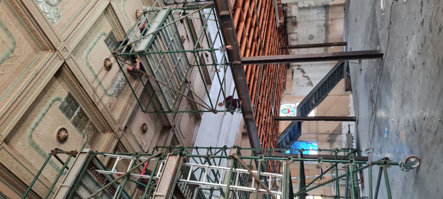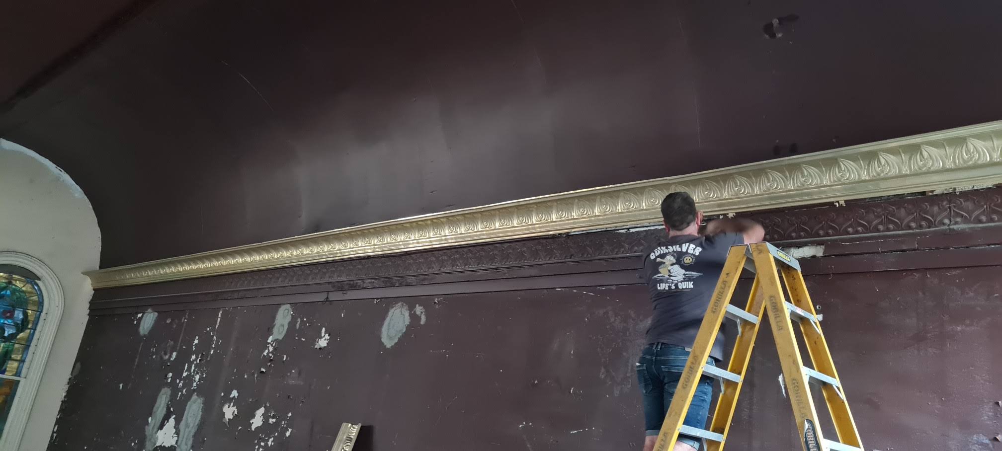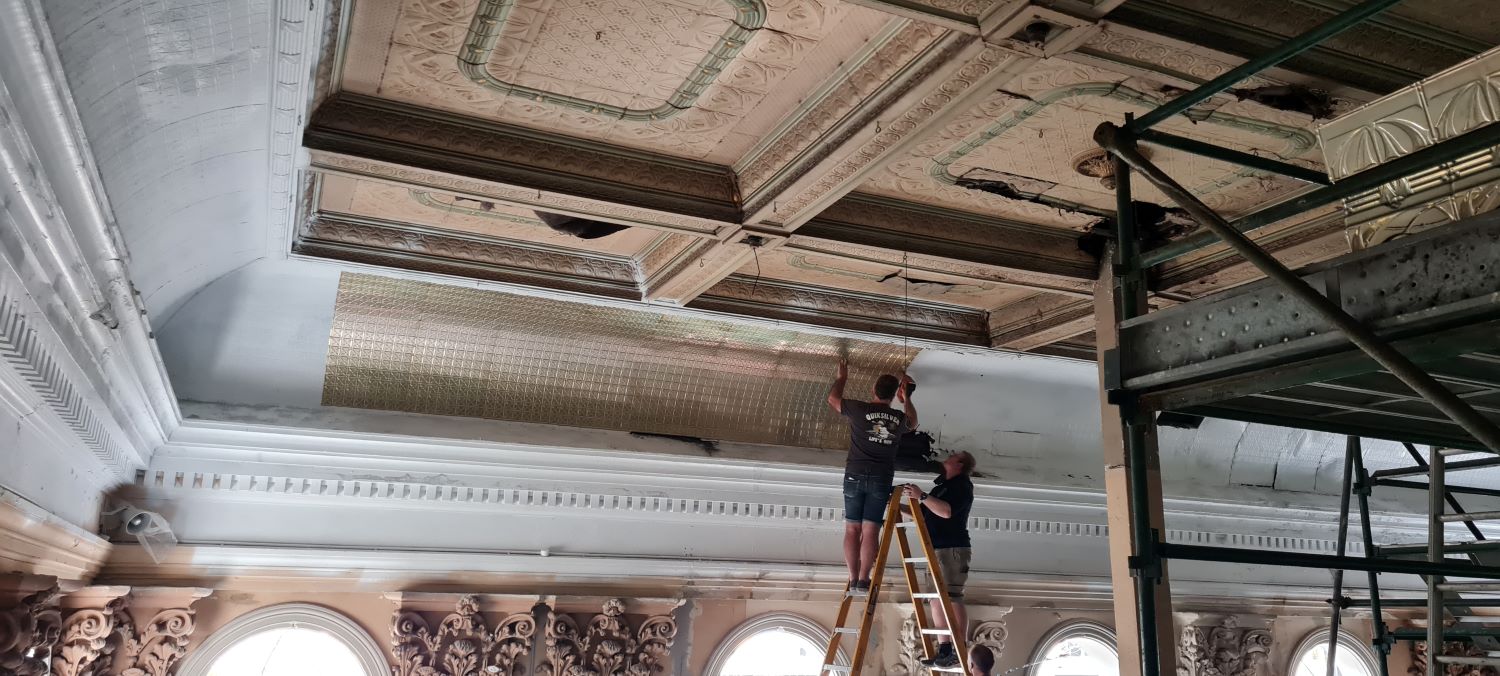Scope of Contracting WorksRepair & restoration of original pressed metal ceiling & metal cornice. Two new dies were created to repair the decorative centre panels.