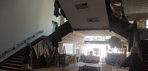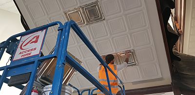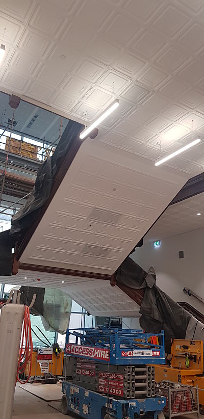 Scope of Contracting WorksCreate new die of pressed metal panel to original imperial measurements from a photograph of the original panel. Working with heritage architects and builder Multiplex install and restore panels to the original Beaufort Staircase.